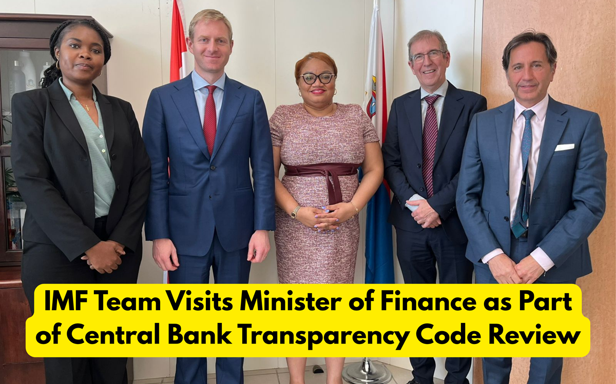 The Minister of Finance received the International Monetary Fund (IMF) mission team, led by Mr. Smith, currently conducting a Central Bank Transparency Code (CBT) review on request of the Central Bank of Curaçao and Sint Maarten (CBCS).
