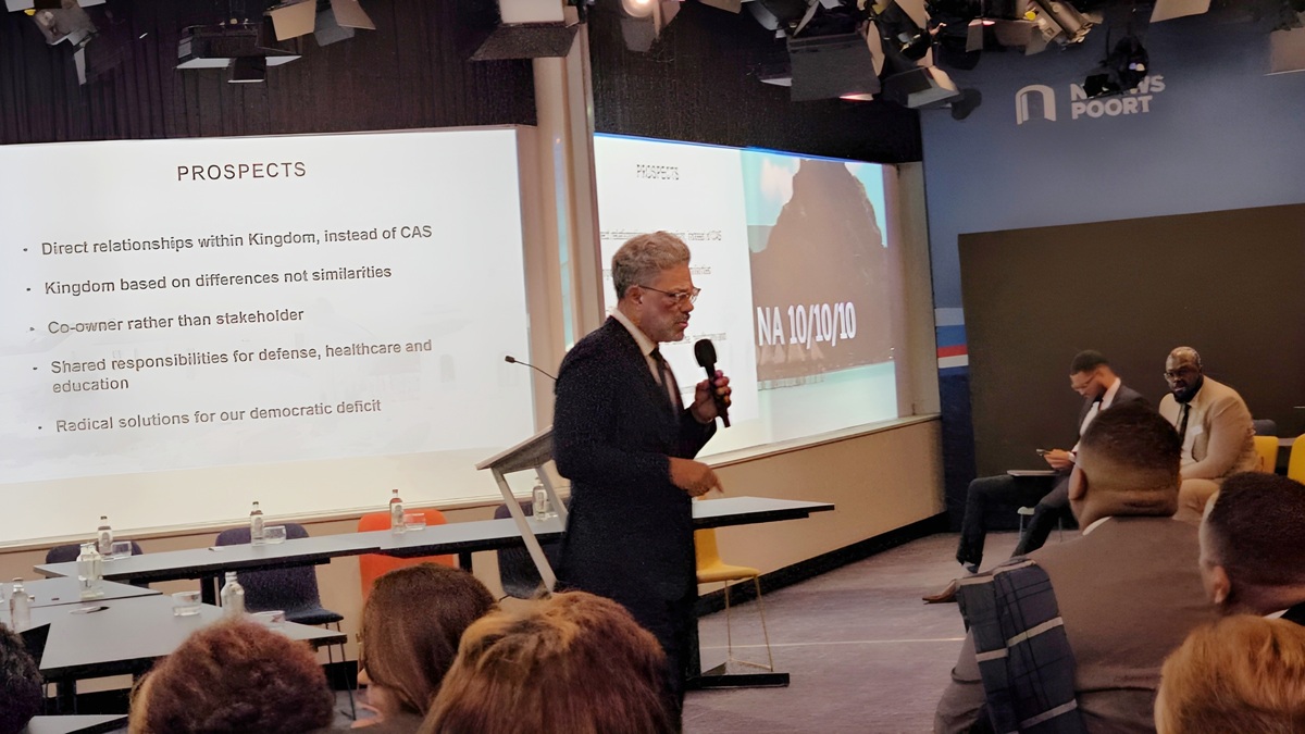 He walked the audience through the major constitutional developments beginning in 1828, including the administrative merger with Suriname, the abolition of slavery in 1863, the creation of the Netherlands Antilles in 1951, the establishment of the Kingdom Charter in 1954, Suriname’s independence in 1975, Aruba’s status aparte in 1986, and the referenda of 1994 and 2000 that culminated in Sint Maarten’s attainment of country status in 2010.
