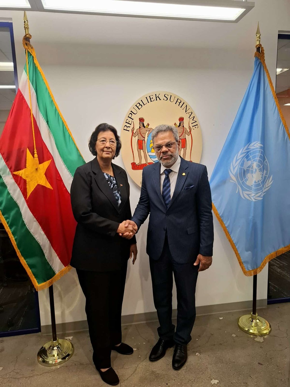 Earlier today, on the sidelines of the United Nations General Assembly (UNGA), the Honorable Prime Minister of Sint Maarten, Dr. Luc Mercelina, initiated and led a high-level bilateral meeting with Her Excellency Jennifer Geerlings-Simons, President of the Republic of Suriname — the first woman to hold the presidency in Suriname.