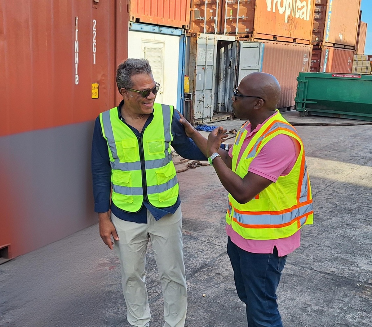 Photo Caption: Honorable Prime Minister Dr. Luc Mercelina and the late Troy Washington in 2024 at the arrival of the temporary generators for NV GEBE by Port St. Maarten.
