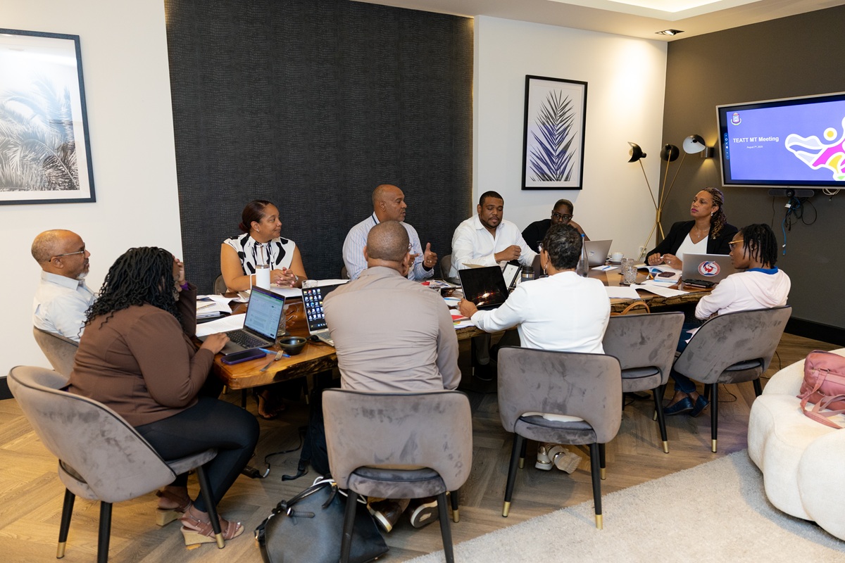 On August 7th, 2025, the Minister of Tourism, Economic Affairs, Transport and Telecommunication (TEATT), Hon. Grisha Heyliger-Marten, hosted a strategic planning session with the Management Team of TEATT at Holland House. The session focused on evaluating the Ministry’s progress in 2025 and initiating discussions to shape priorities and direction for 2026 and beyond.